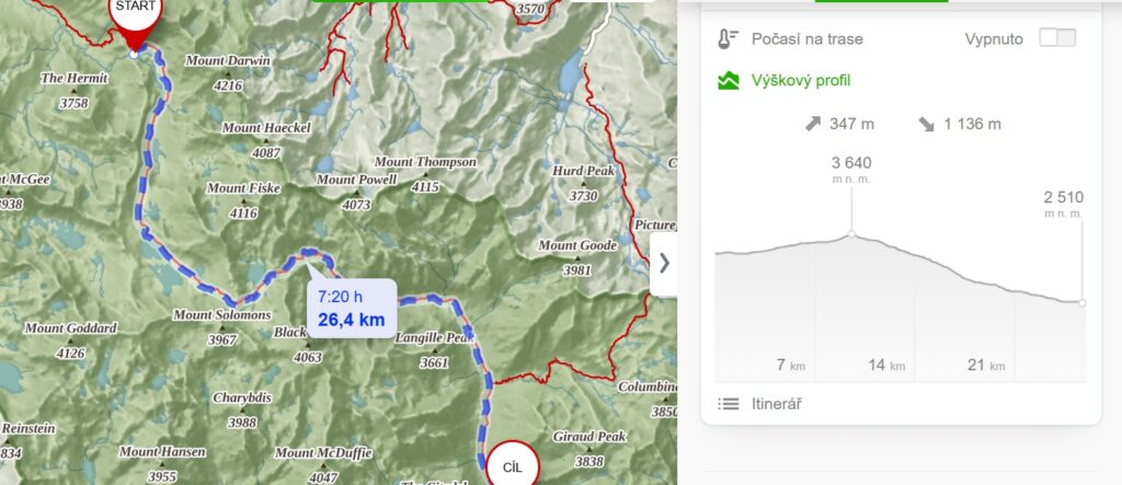 Nejsem v tom sama. Dva postarší hikeři kolem mě neustále zastavují, fotí, posedávají na kamenech – očividně jsme všichni na stejné vlně: kombinace obdivu, únavy a lehkého zoufalství. Když se dozvědí, že jsme z Česka, rozzáří se. A jeden z nich prohlásí, že se jde těžko, protože Sierra Nevada je vyšší než Karpaty. Američan, který ví, že existují Karpaty! Skoro se mi chce mu zatleskat. Jen konstatuji, že v Česku máme hory ještě o poznání skromnější. Zná i pozdrav Ahoj – pro Čechy tak typický. Ráda bych se ho zeptala na to, jestli byl někdy ve střední Evropě, ale dělá mi problémy i komunikace v češtině. Pokračuji v boji s vedrem, které se mi opírá do plic.