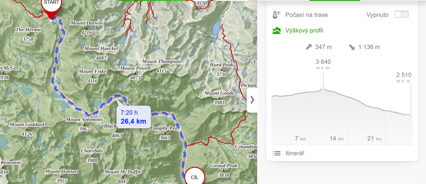 Nejsem v tom sama. Dva postarší hikeři kolem mě neustále zastavují, fotí, posedávají na kamenech – očividně jsme všichni na stejné vlně: kombinace obdivu, únavy a lehkého zoufalství. Když se dozvědí, že jsme z Česka, rozzáří se. A jeden z nich prohlásí, že se jde těžko, protože Sierra Nevada je vyšší než Karpaty. Američan, který ví, že existují Karpaty! Skoro se mi chce mu zatleskat. Jen konstatuji, že v Česku máme hory ještě o poznání skromnější. Zná i pozdrav Ahoj – pro Čechy tak typický. Ráda bych se ho zeptala na to, jestli byl někdy ve střední Evropě, ale dělá mi problémy i komunikace v češtině. Pokračuji v boji s vedrem, které se mi opírá do plic.