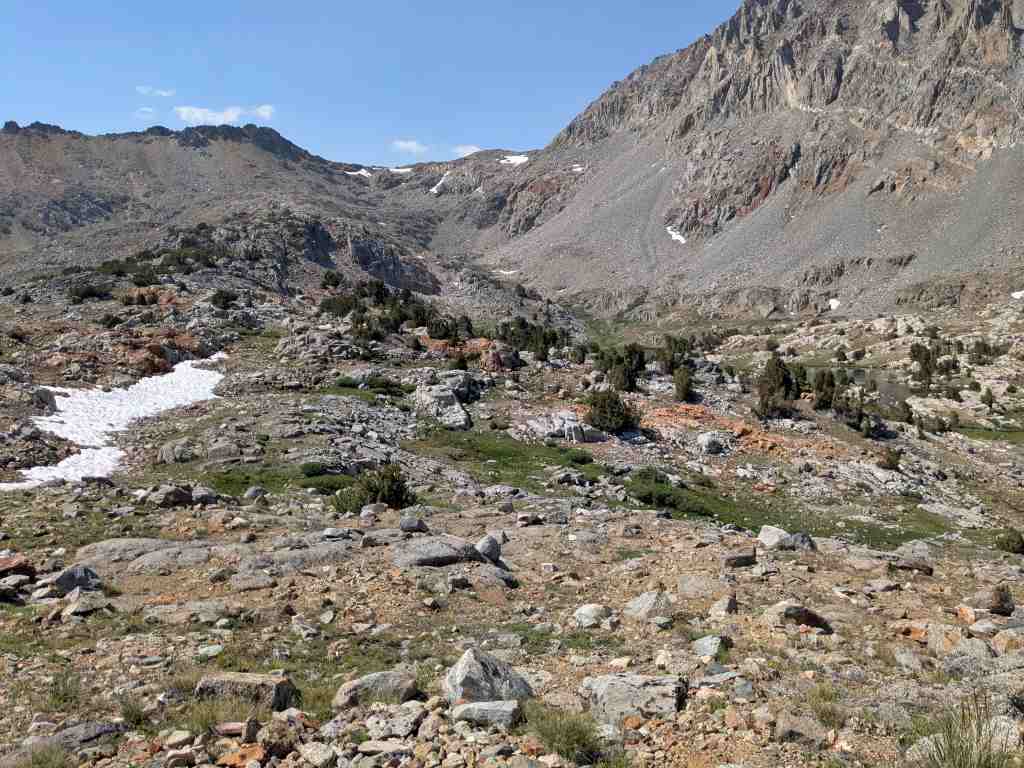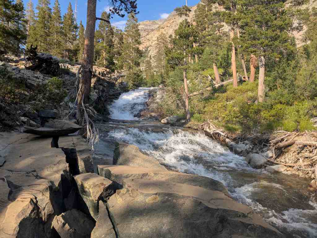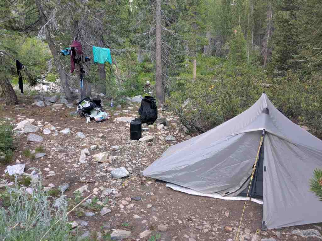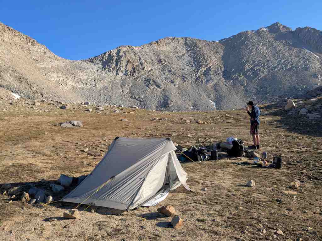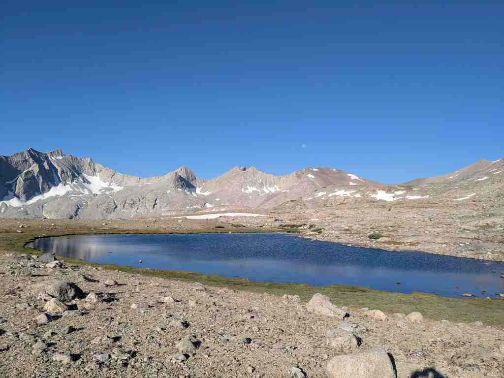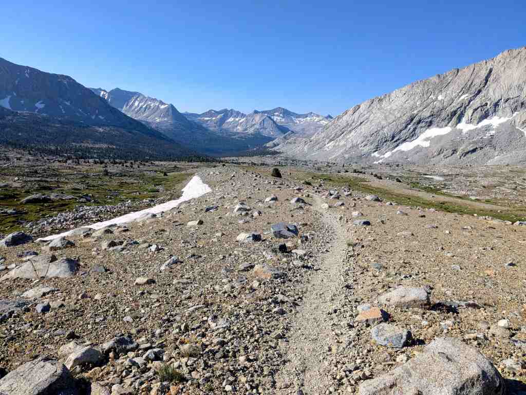 Po večeři řešíme, co nás čeká. Zásoby se tenčí, i když s nimi šetříme, a máme před sebou tři možnosti. Před námi tři možnosti. První: přejít přes Kearsarge Pass (3 569 m) do Onion Valley, stopnout auto do Independence, dokoupit jídlo a vrátit se. Zabere to dva dny. Druhá: udělat to samé, ale už se nevracet. Třetí: zkusit dojít s tím, co máme. Upřímně? V tuhle chvíli si neumím představit ani jednu.