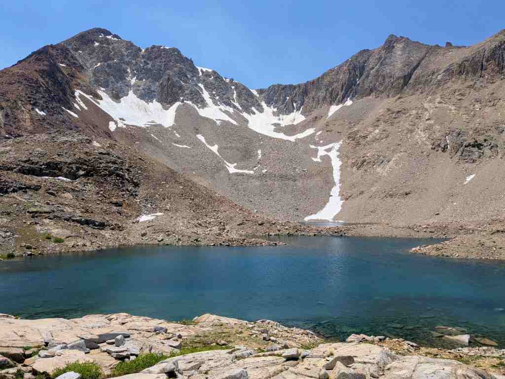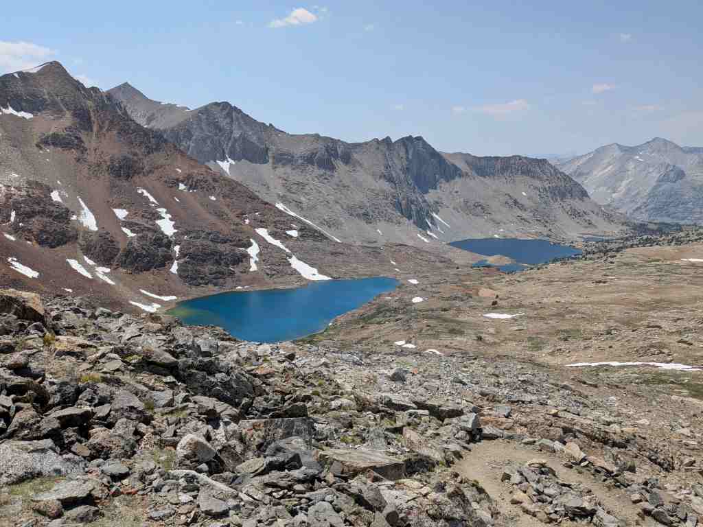 Noc byla neklidná, ale alespoň jsme ji protáhli. V klidu snídáme instantní ovesku a vyrážíme dolů do údolí až kolem osmé. Slečna v kraťáskách, která nás už několikrát předběhla, už je dávno na trailu. V deset se cesta obrací a my stoupáme dalším bočním údolím k nádherně modrému jezeru Marjorie. Horské hřebeny nás obklopují ze všech stran. Krajina je naprosto dechberoucí.