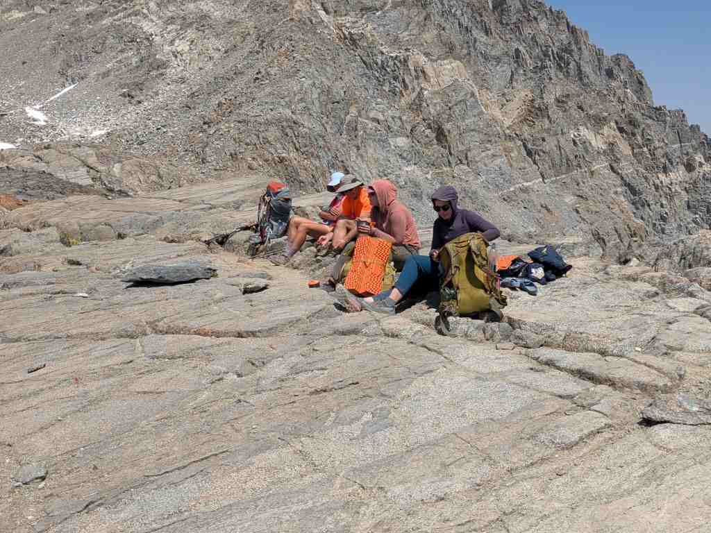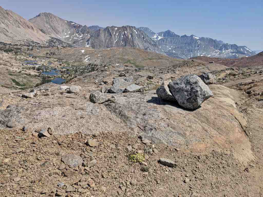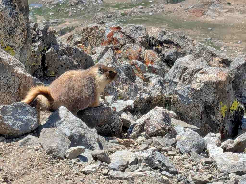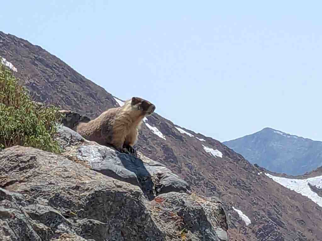 Nahoru to máme šest kilometrů a šest set výškových metrů, takže vlastně nic obtížného – cesta stoupá pozvolna a pohodlně. V pohodě ovšem nejsem já. Šlape se mi špatně, jako by mi došla síla. Vlastně se vleču. Zdeněk na mě naléhá, ať se víc snažím, ale já už opravdu nevím, co víc dělat. Dokonce si říkám, jestli třeba nemám málo červených krvinek nebo jiný „fyziologický“ důvod. Fyzičku mám přiměřenou věku; i když jsem se ji snažila zlepšit od chvíle, kdy jsem věděla, že trek půjdeme, příliš se nezvedla. V horách kráčím hlavně „na morál“. Vyjdu vše, nezhroutím se, neodpadnu, ale jsem prostě zoufale pomalá. Do průsmyku Pinchot Pass (3697 m) přicházím někdy po půl třetí. Vydýchneme se, pokocháme a pokračujeme dolů. Zdeněk se při čekání baví focením svišťů, kterých je tu opravdu hodně – jsou zvědaví a zároveň lekaví. Je s nimi legrace.