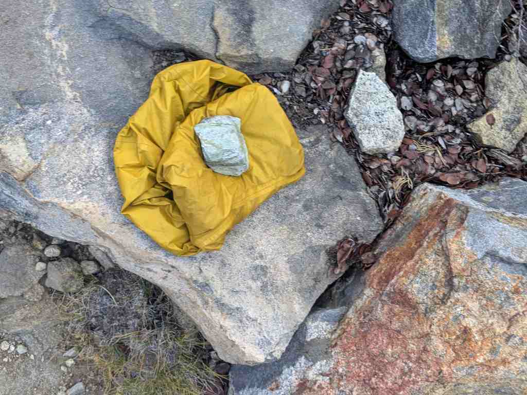 Po necelém kilometru nacházíme žlutou bundu. Někdo ji pečlivě složil na kámen a zatížil dalším, aby neuletěla. Co teď? Kdybychom potkali někoho, kdo stoupá nahoru, mohl by ji třeba předat mladíkovi v havajské košili. Jeho si člověk zapamatuje. A protože je ještě brzy ráno, není ta naděje úplně marná.