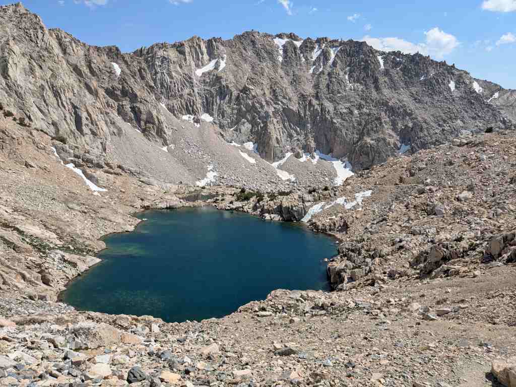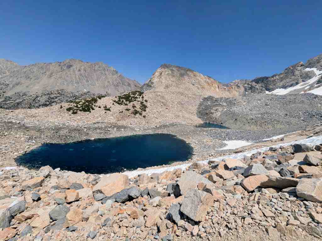 Obědváme ve stínu na břehu jezera Upper Rae Lake. Voda se leskne jako obrovský safír. Zdeněk se odvážně noří do ledové hladiny, udělá pár temp a rychle se vrací. „Ledárna,“ zhodnotí. O kousek dál odpočívají další turisté – a vypadá to, že všichni do té ledové vody vlezli. Trochu mě mrzí, že jsem zmrzlina. Nachlazení před stoupáním by se mi ne hodilo, tak budu muset spoléhat jen na namočený klobouk. Naštvaná na sebe začínám stoupat. Kéž bych se dokázala dostat nahoru rychleji…