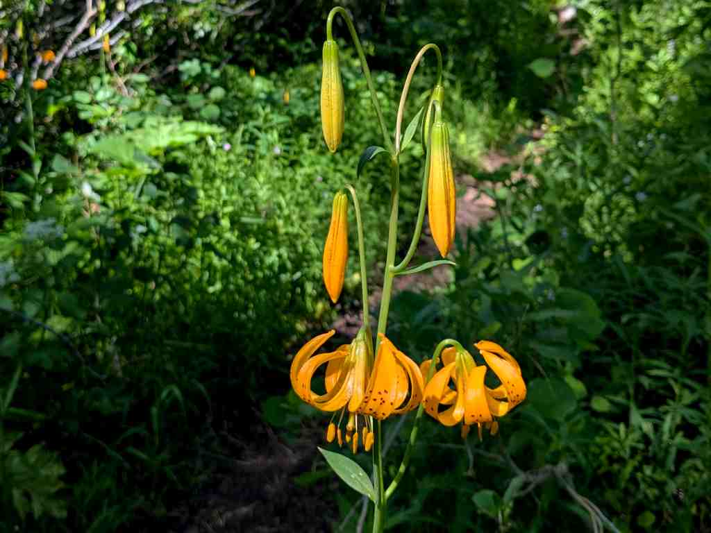 Začínáme stoupat, čeká nás převýšení 700 metrů. Jezero necháváme pod sebou, mezi stromy není vůbec vidět. Najednou zahlédnu Zdeňka: mobil v ruce, tváří se soustředěně. Ale mapu nesleduje. Čte zprávy! Od jezera sem dolétl zázrakem kousek signálu. Po třech dnech půstu jsme rychle zkoumáme, zda je doma všechno v pořádku. Signál je slabý, ale i fotka prošla. Turisté v protisměru se snaží o totéž, ale marně.