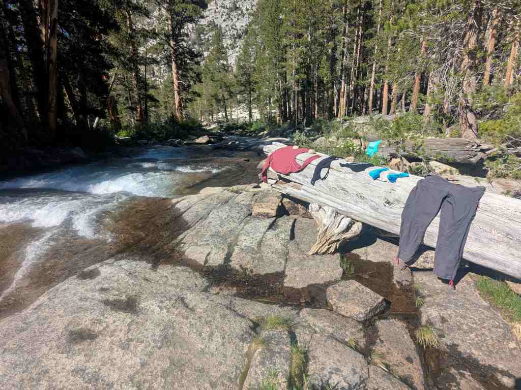 Pereme oblečení, protože zásoby náhradního oblečení jsou skromné. Sušíme ho na kamenech a na stromě, který kdysi strhla voda. Vedle vaříme čaj a brzkou večeři. Idylka…Snad jsem si odpočinula dost, abych dobře zvládala další cestu…