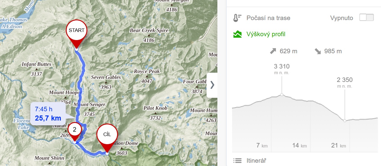 Naším dnešním cílem je Muir Trail Ranch – pro nás možná jediné zásobovací místo na cestě. Dají se tu nabít mobily, koupit hygienické potřeby a případně přenocovat v chatičkách. Bohužel potraviny tu neprodávají, přesto sem většina hikerů zavítá.