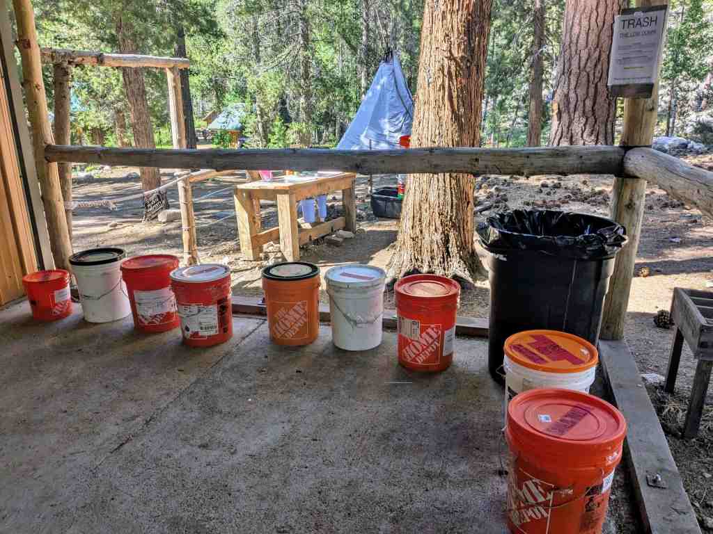 Za slušné peníze sem zásilky dopravují koně, a proto se vše musí zabalit do plastových barelů. Hikeři je připravují ještě před odchodem na trek, takže do nich dávají to, co si myslí, že budou tou dobou potřebovat – raději víc než míň. Na místě si balík vyzvednou a vezmou si z něj, co chtějí; něco se nevejde do bear canistru, něčeho už mají dost. Co udělat se zbytkem? Všechno, co nechtějí, končí v tzv. hikers boxu a přenechají ho ostatním. V Red’s Meadow toho moc nezbylo. Jen dvě krabice: jedna s jídlem, druhá s trvanlivými věcmi. Ocitli jsme se tam zrovna ve chvíli, kdy dvě dámy vybalovaly svůj balík a v hikers boxu skončila minimálně polovina zásob. Vedle stáli hikeři a trpělivě čekali, co si budou moct odnést. Dobrý způsob sdílení.